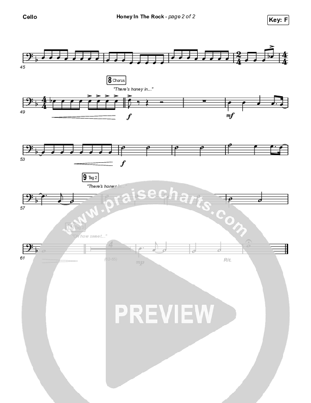 Download the Cello sheet music for Honey In The Rock (Sing It Now SATB) by Brooke Ligertwood / Arr. Mason Brown, from the album SEVEN. This song was arranged by Mason Brown / Daniel Galbraith in the key of F.