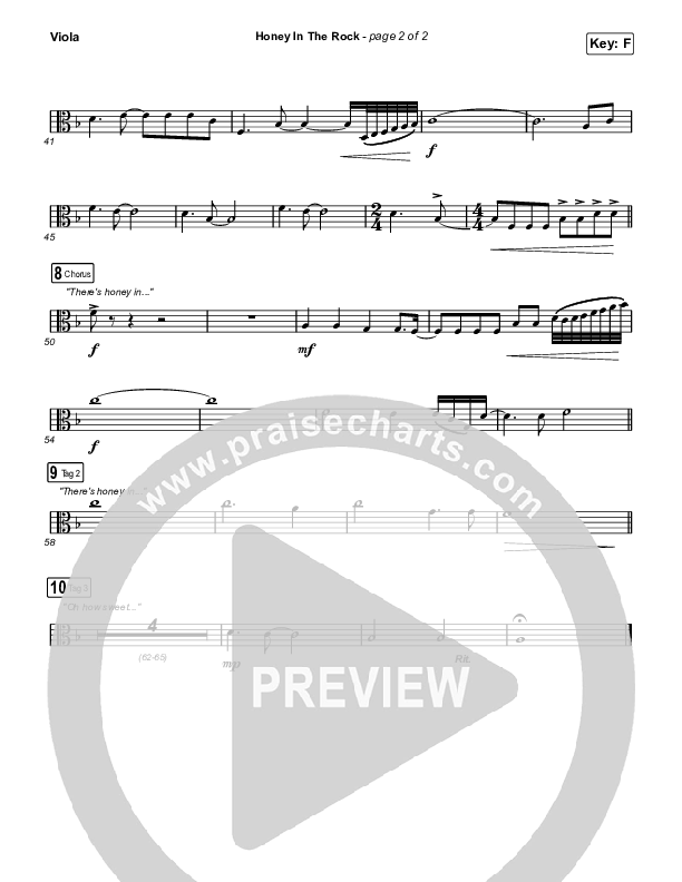 Download the Viola sheet music for Honey In The Rock (Sing It Now SATB) by Brooke Ligertwood / Arr. Mason Brown, from the album SEVEN. This song was arranged by Mason Brown / Daniel Galbraith in the key of F.