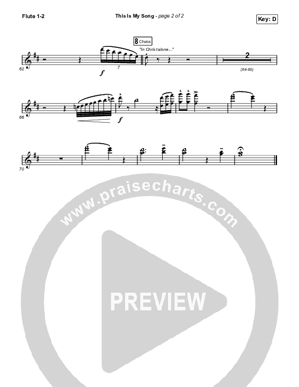 Download the Flute sheet music for This Is My Song (Live) by North Point Worship, from the album Our God Will See Us Through. This song was arranged by Mason Brown in the key of C, D.