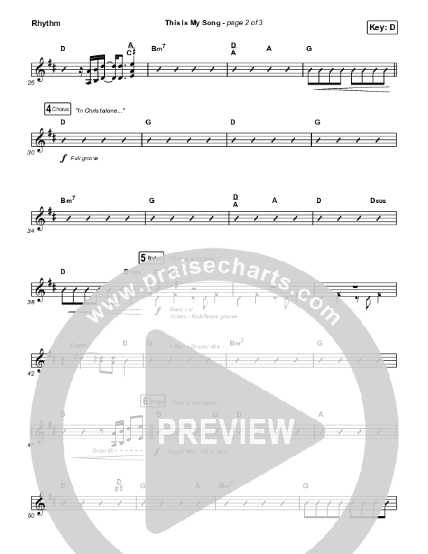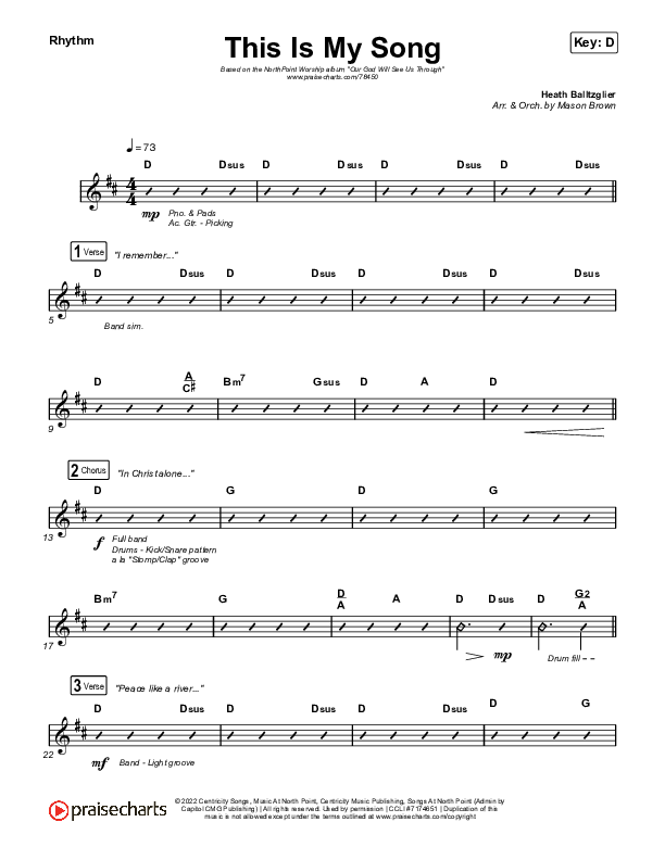 Download the Rhythm Chart for This Is My Song (Live) by North Point Worship, from the album Our God Will See Us Through. This song was arranged by Mason Brown in the key of C, D.