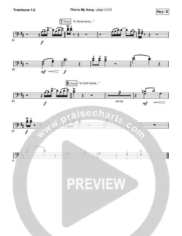 Download the Trombone 1,2 sheet music for This Is My Song (Live) by North Point Worship, from the album Our God Will See Us Through. This song was arranged by Mason Brown in the key of C, D.