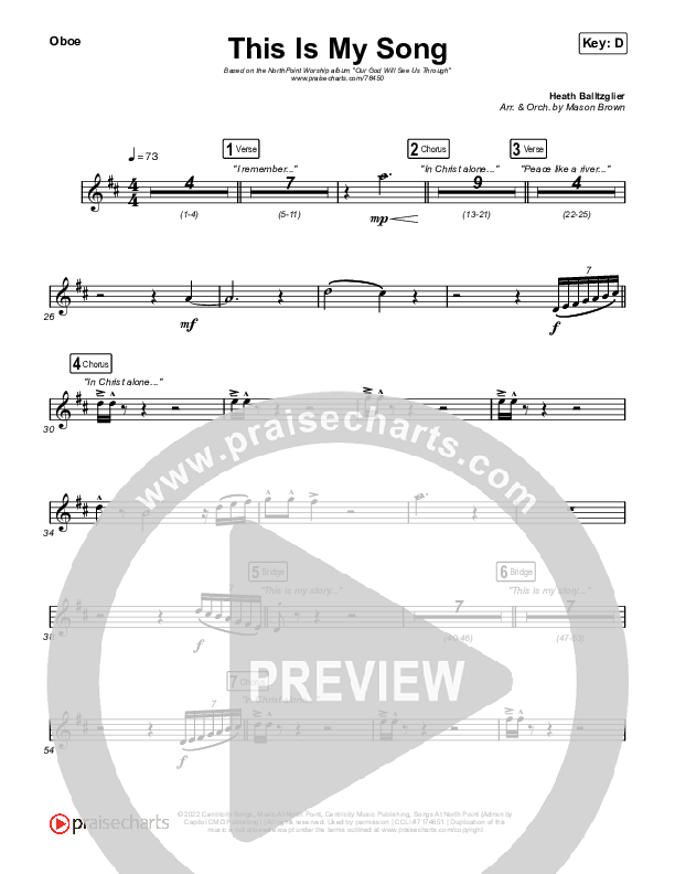Download the Orchestration wind parts for This Is My Song (Live) by North Point Worship, from the album Our God Will See Us Through. This song was arranged by Mason Brown in the key of C, D.