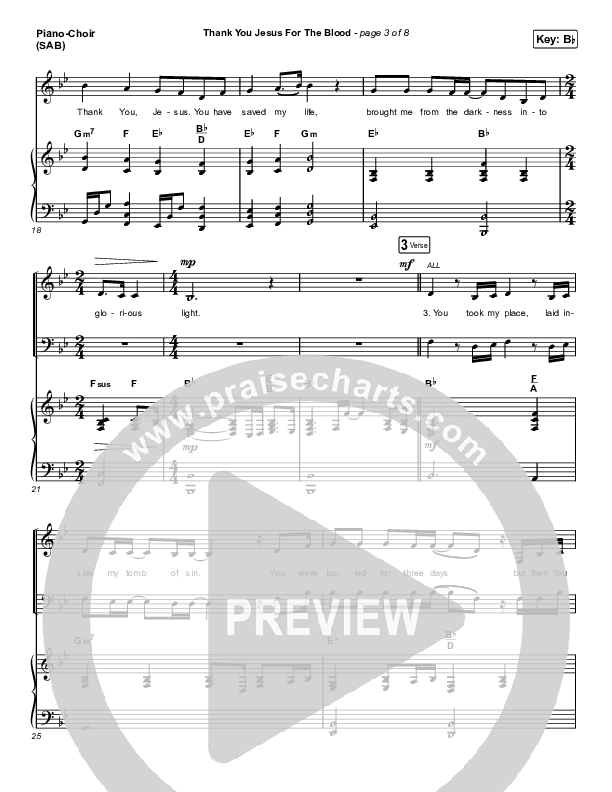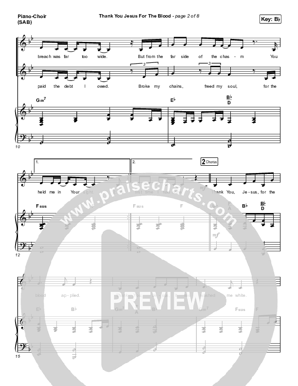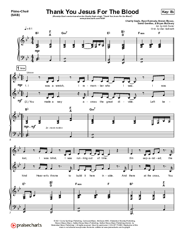 Download the PDF sheet music for Thank You Jesus For The Blood (Worship Choir SAB) by Charity Gayle / Arr. Erik Foster, from the album Endless Praise. This song was arranged by Erik Foster / Luke Gambill / Daniel Galbraith in the key of Bb.