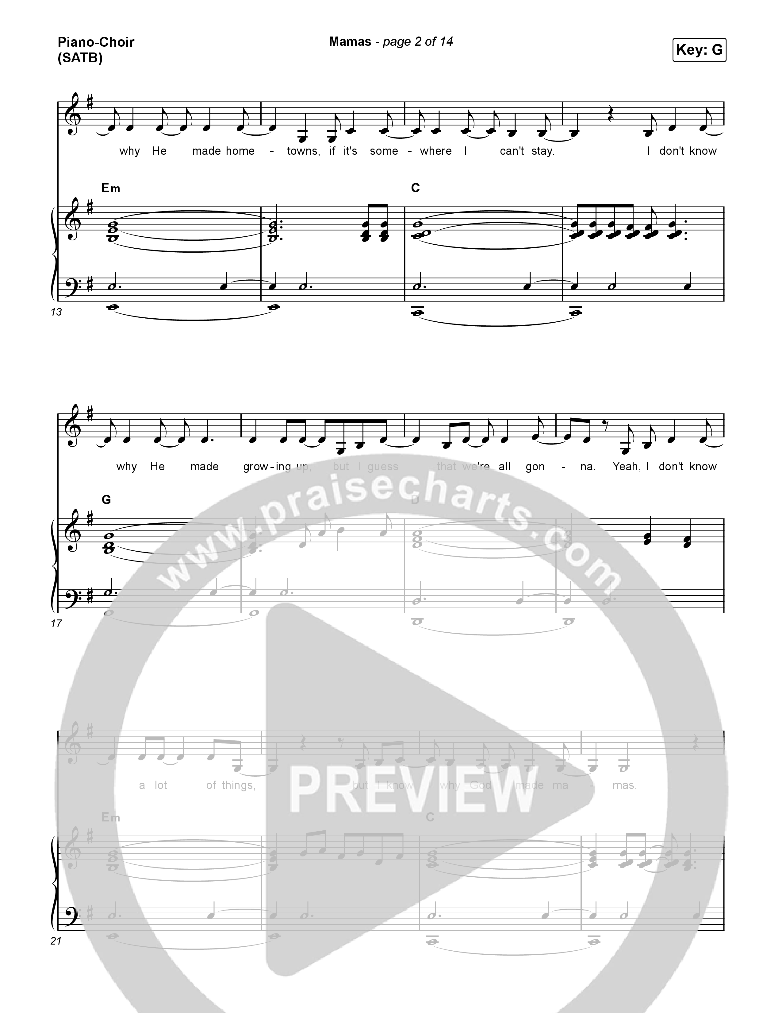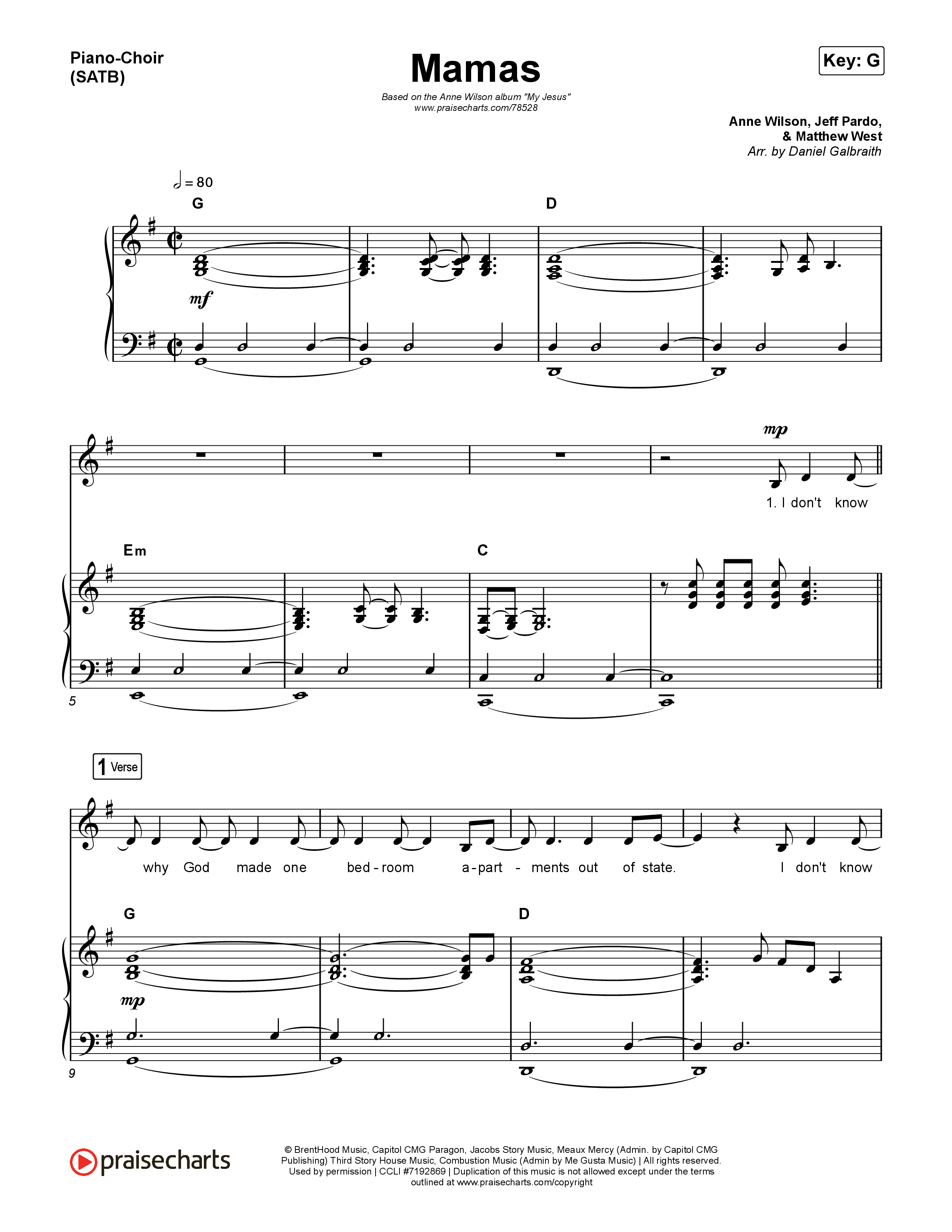 Download the sheet music for Mamas by Anne Wilson, from the album My Jesus. This song was arranged by Daniel Galbraith in the key of Ab, G.