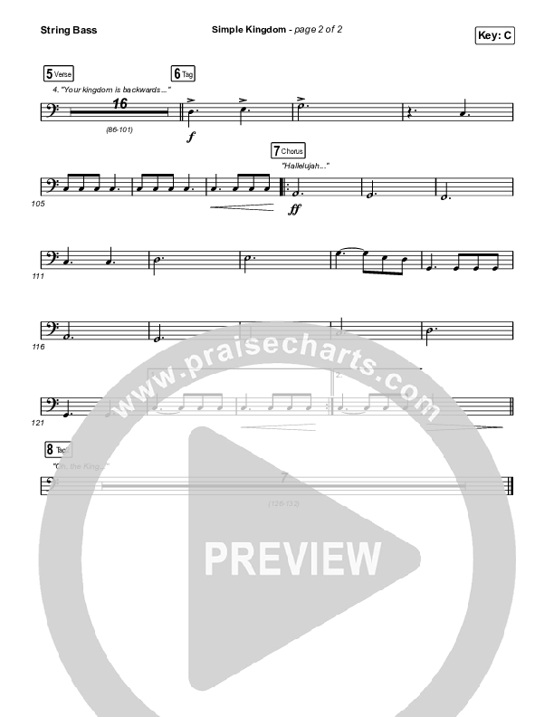 Simple Kingdom (Live) String Bass Sheet Music PDF (Bryan & Katie Torwalt)