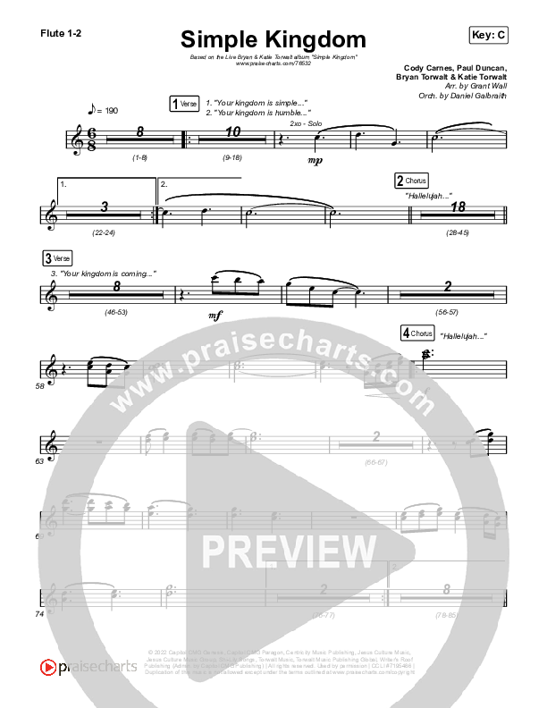 Simple Kingdom (Live) Flute Sheet Music PDF (Bryan & Katie Torwalt)