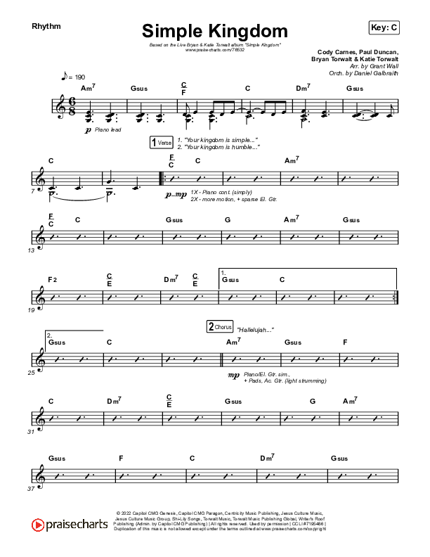 Download the PDF sheet music for Simple Kingdom (Live) by Bryan & Katie Torwalt, from the album I've Got Good News. This song was arranged by Grant Wall / Daniel Galbraith in the key of C, D.
