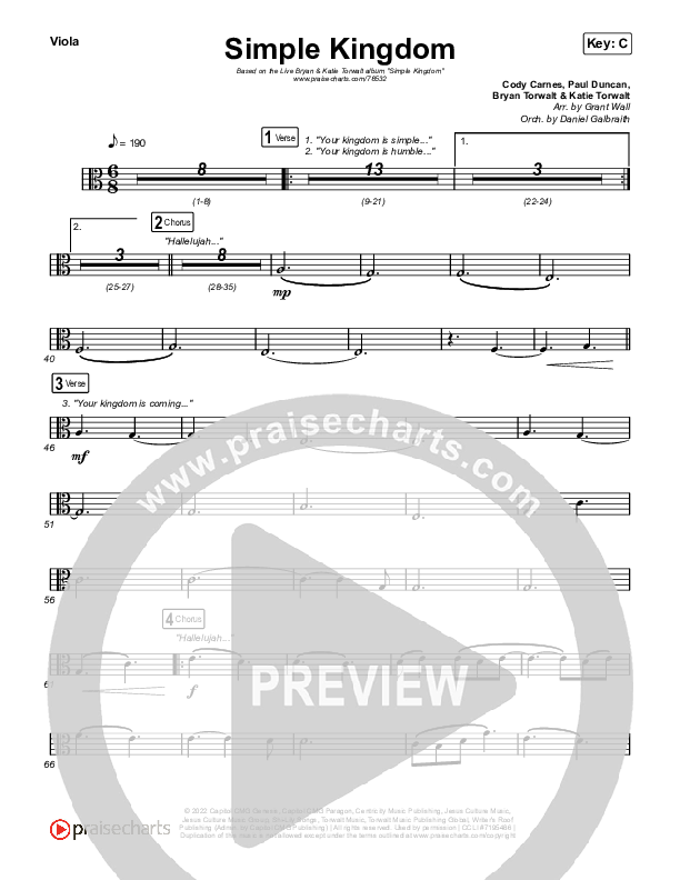 Simple Kingdom (Live) Viola Sheet Music PDF (Bryan & Katie Torwalt)