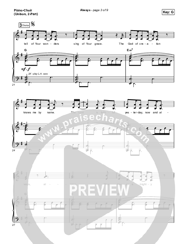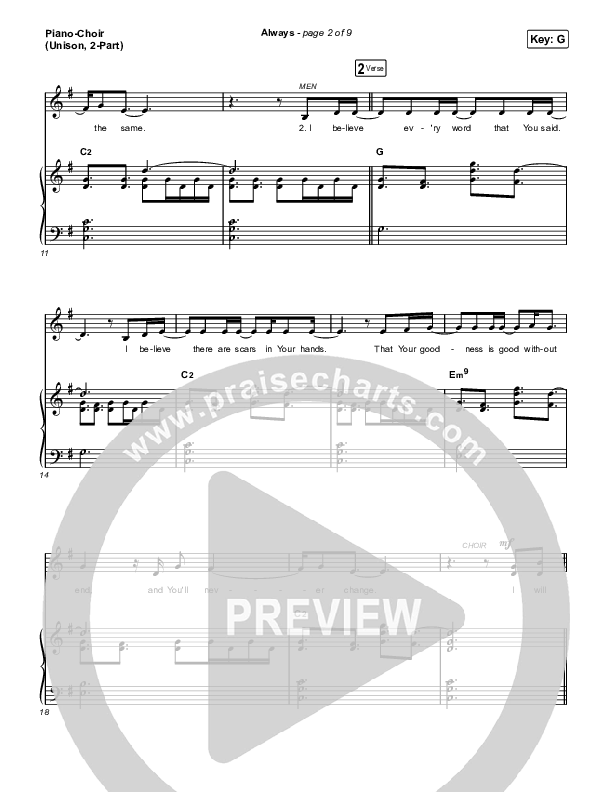 Download the PDF sheet music for Always (Unison/2-Part Choir) by Chris Tomlin / Arr. Mason Brown, from the album Always. This song was arranged by Mason Brown / Daniel Galbraith / Grant Wall in the key of G.