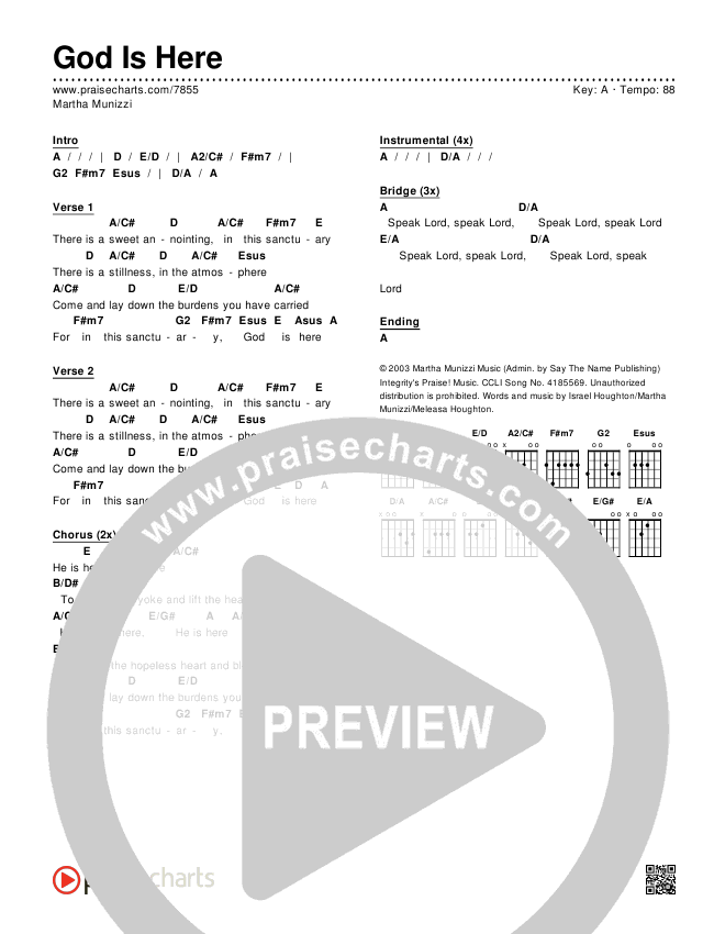 God Is Here Chords PDF (Martha Munizzi)