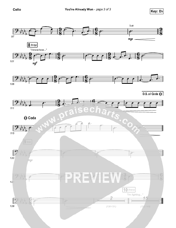 You've Already Won (YouTube) Cello Sheet Music PDF (Shane & Shane)