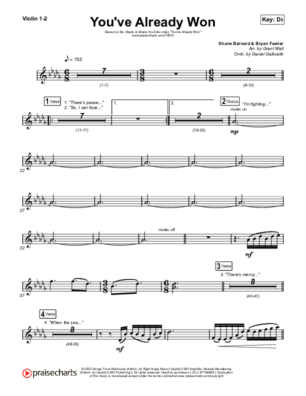 Download the Orchestration string parts for You've Already Won (YouTube) by Shane & Shane, from the album You've Already Won: A Song For Ukraine. This song was arranged by Grant Wall / Daniel Galbraith in the key of D, Db.