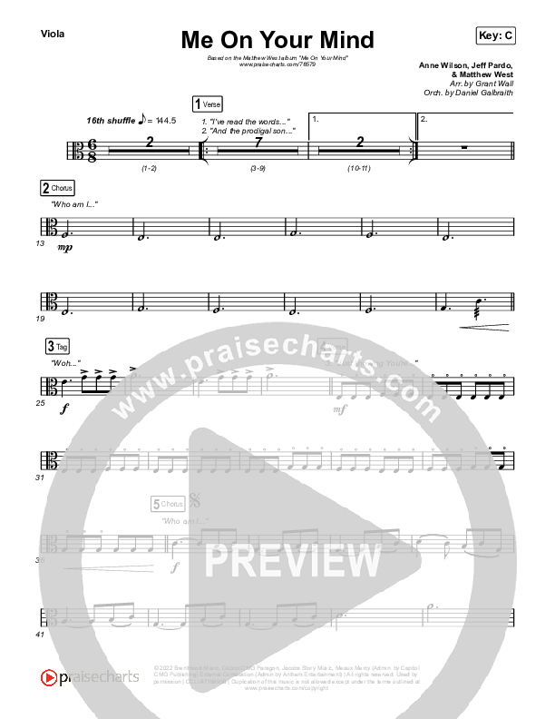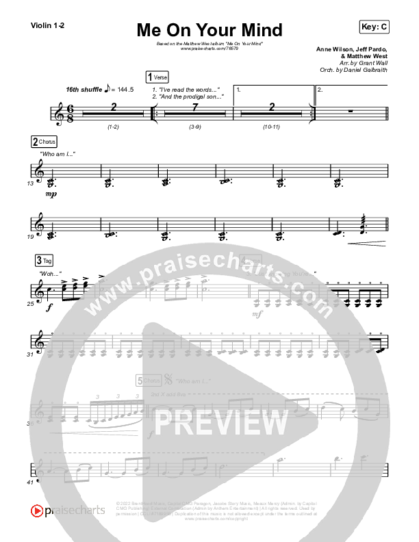 Download the Orchestration string parts for Me On Your Mind by Matthew West, from the album Me On Your Mind. This song was arranged by Grant Wall / Daniel Galbraith in the key of Bb, C.