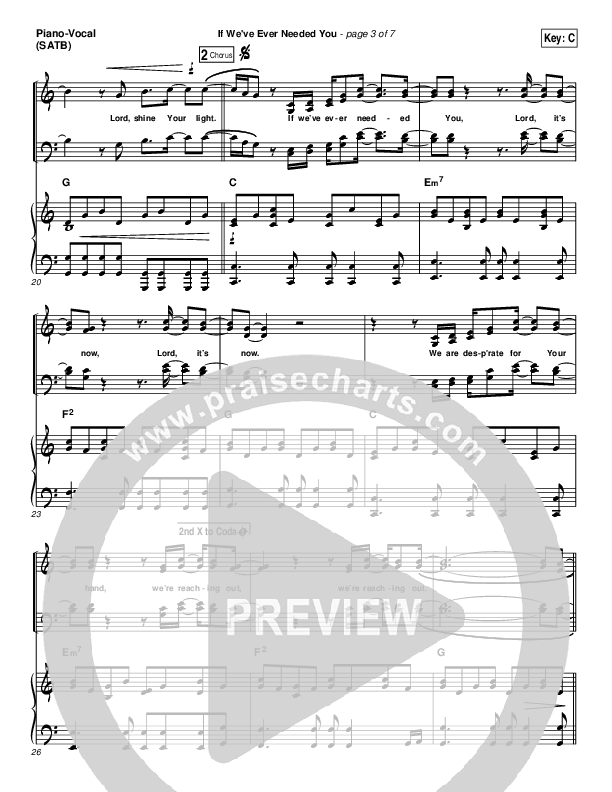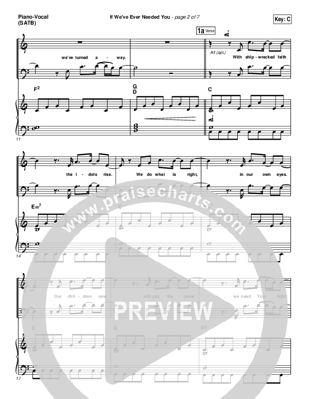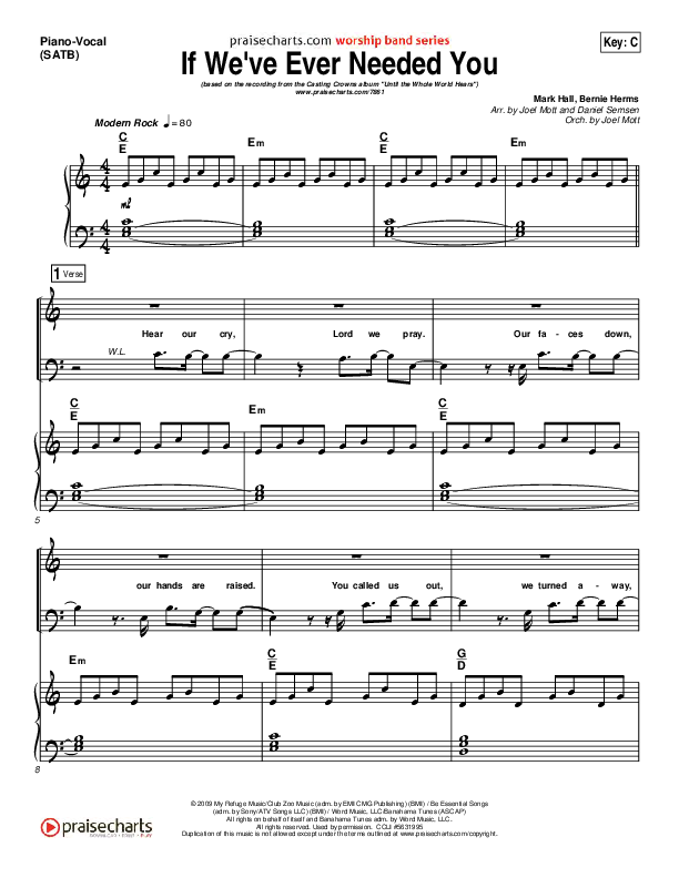 Download the sheet music for If We've Ever Needed You by Casting Crowns, from the album Until The Whole World Hears. This song was arranged by Joel Mott / Daniel Semsen in the key of C, D.