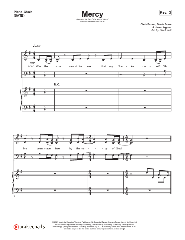 Download the PDF sheet music for Mercy by Ben Fuller, from the album Mercy. This song was arranged by Grant Wall in the key of Ab, G.