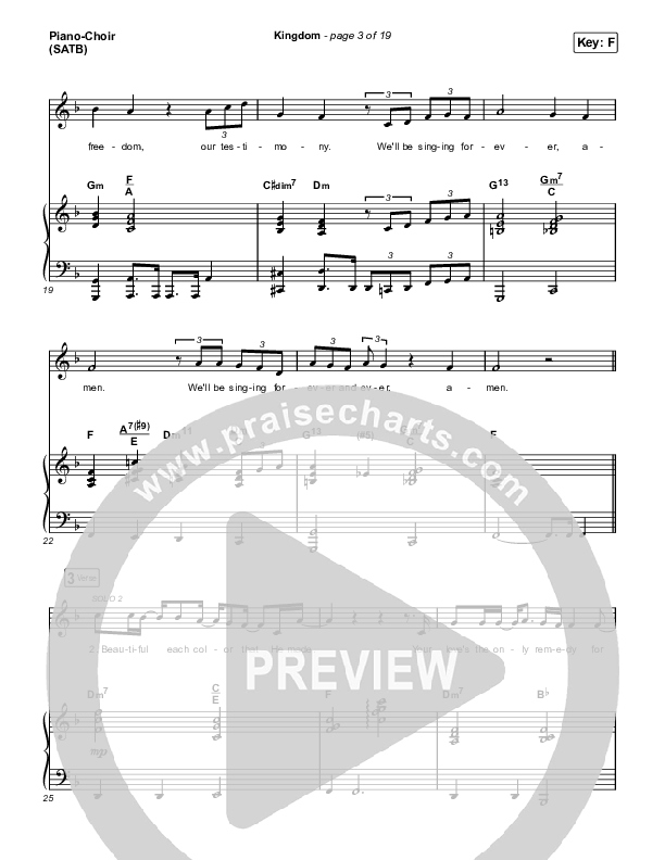 Download the sheet music for Kingdom by Maverick City Music / Kirk Franklin / Naomi Raine / Chandler Moore, from the album Kingdom: Book One. This song was arranged by Daniel Galbraith in the key of E, F.