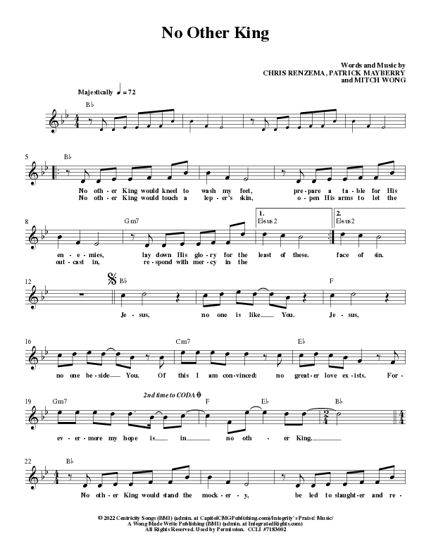 No Other King Sheet Music PDF (Centricity Worship / Heath Balltzglier / Seth Condrey)