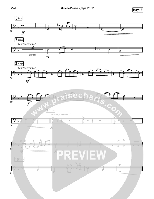 Download the Cello sheet music for Miracle Power by We The Kingdom, from the album We The Kingdom. This song was arranged by Grant Wall / Daniel Galbraith in the key of E, F.