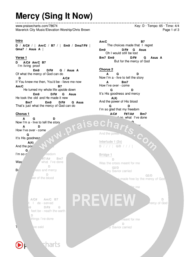 Download the PDF Chord Charts for Mercy (Sing It Now SATB) by Maverick City Music / Elevation Worship / Chris Brown, from the album Old Church Basement.