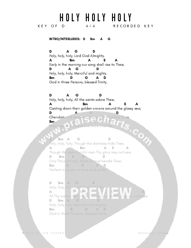 Holy Holy Holy Chords PDF (Reawaken Hymns)