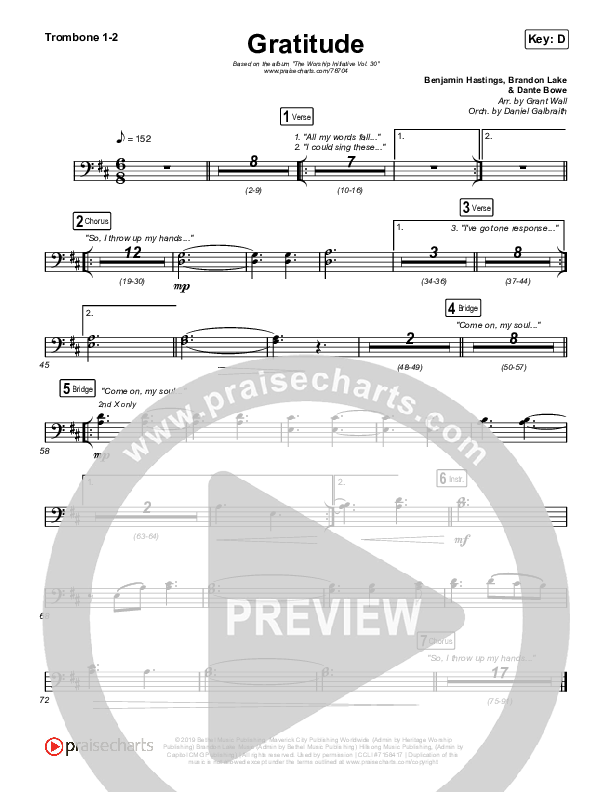 Gratitude Trombone Sheet Music PDF (The Worship Initiative / Shane & Shane)