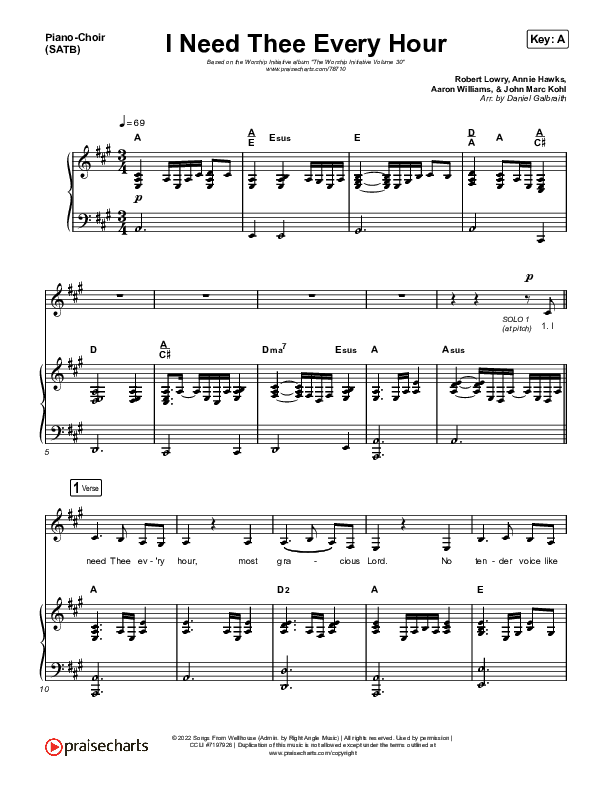 Download the sheet music for I Need Thee Every Hour by The Worship Initiative / Shane & Shane, from the album The Worship Initiative Volume 30. This song was arranged by Daniel Galbraith in the key of A, Bb.