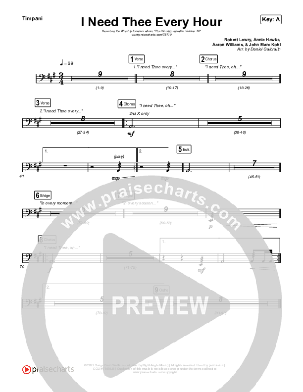 I Need Thee Every Hour Timpani Sheet Music PDF (The Worship Initiative / Shane & Shane)