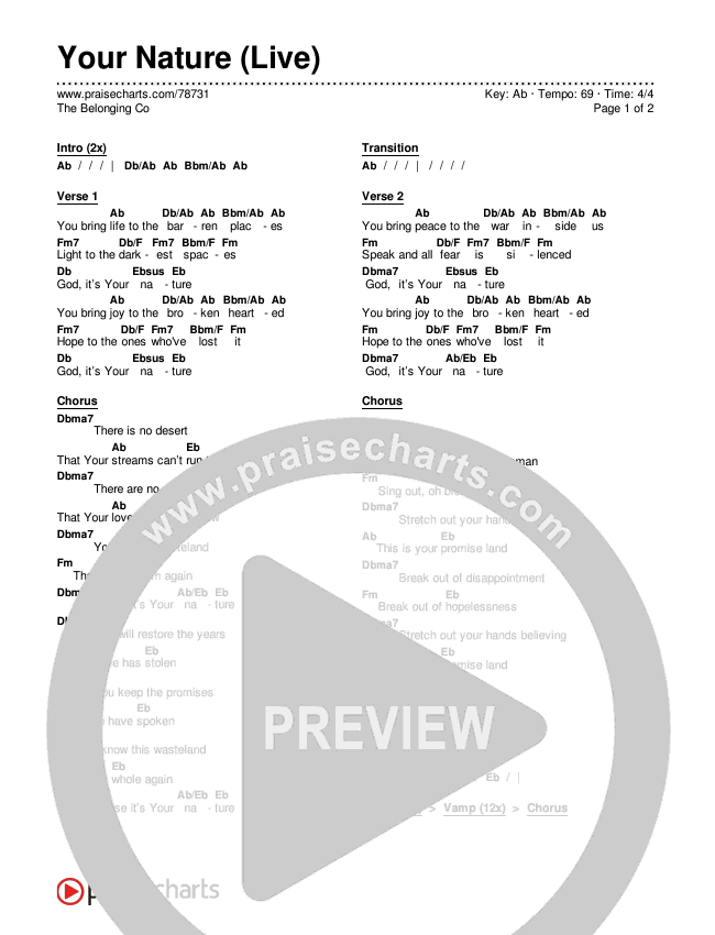 Download the PDF Chord Charts for Your Nature (Live) by The Belonging Co, from the album Now.