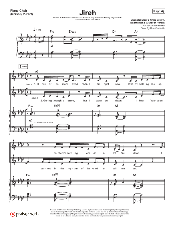 Jireh (Unison/2-Part Choir) Sheet Music PDF (Maverick City Music / Elevation Worship / Arr. Mason Brown)