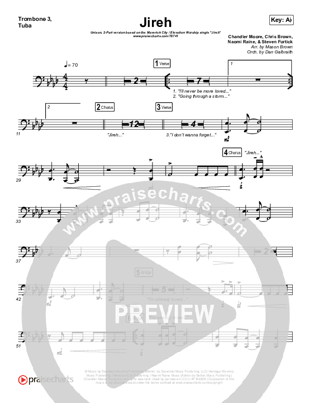 Jireh (Unison/2-Part Choir) Trombone/Tuba Sheet Music PDF (Maverick City Music / Elevation Worship / Arr. Mason Brown)