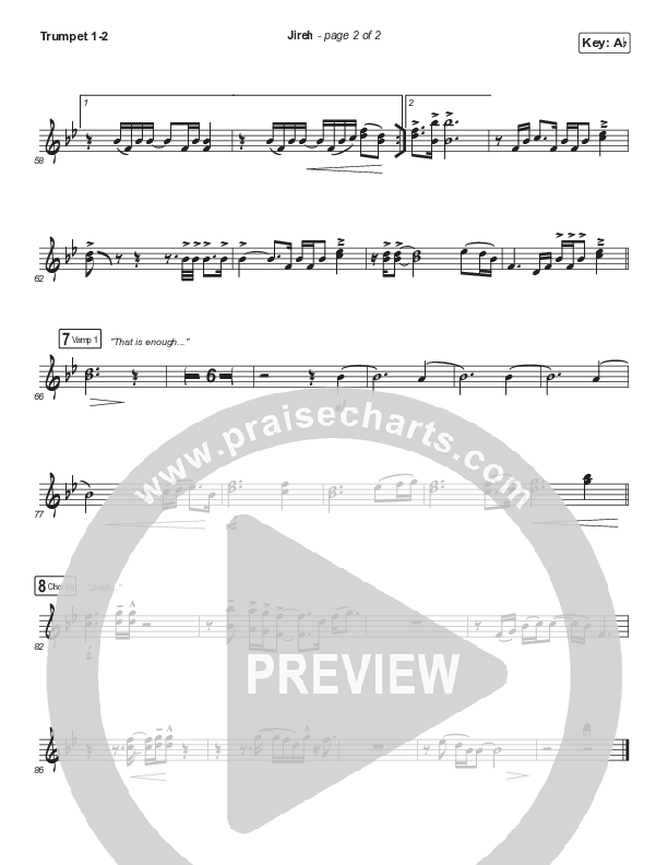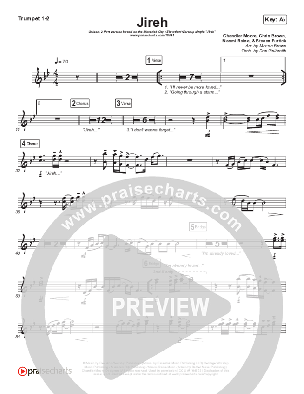 Download the trumpet sheet music for Jireh (Unison/2-Part Choir) by Maverick City Music / Elevation Worship / Arr. Mason Brown, from the album Old Church Basement. This song was arranged by Mason Brown / Luke Gambill / Daniel Galbraith in the key of Ab.