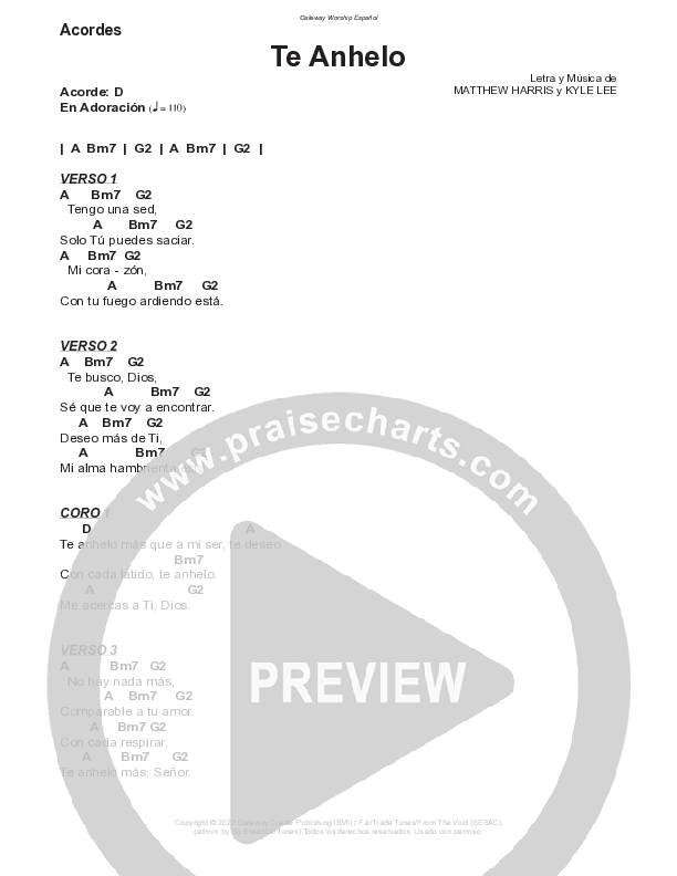 Download the PDF Chord Charts for Te Anhelo by Gateway Worship Español / Becky Collazos, from the album Grande y Fiel.