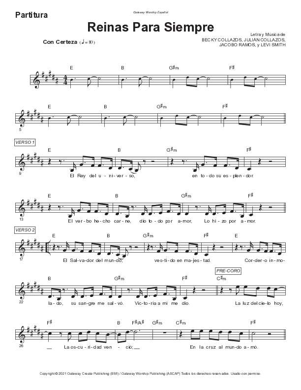 Download the sheet music for Reinas Para Siempre by Gateway Worship Español / Coalo Zamorano, from the album Grande y Fiel.