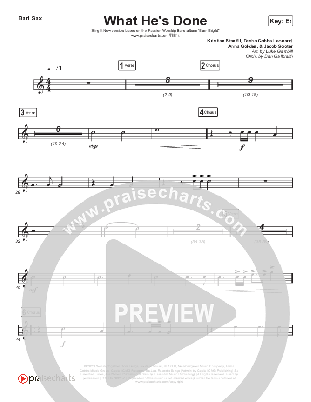 Passion / Kristian Stanfill / Tasha Cobbs Leonard / Anna Golden / Arr. Luke GambillBari Sax Details