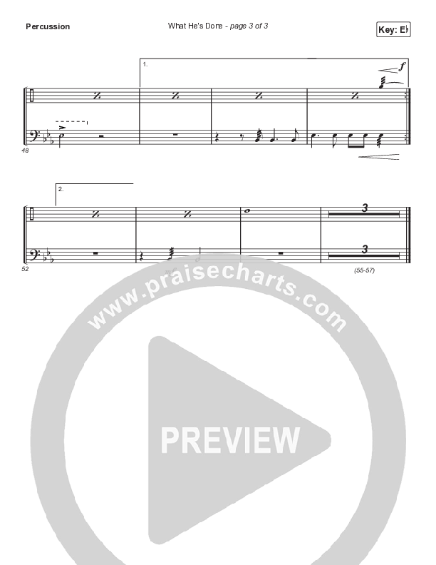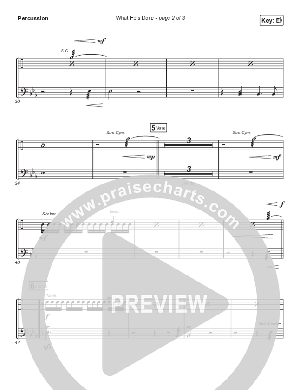 What He's Done (Worship Choir SAB) Percussion Sheet Music PDF (Passion / Kristian Stanfill / Tasha Cobbs Leonard / Anna Golden / Arr. Luke Gambill)