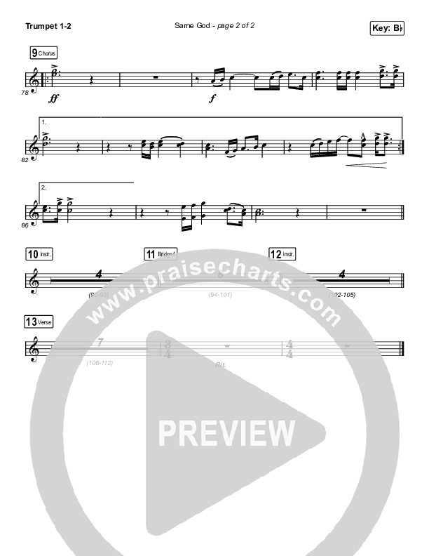 Same God (Unison/2-Part Choir) Trumpet Sheet Music PDF (Elevation Worship / Jonsal Barrientes / Arr. Luke Gambill)