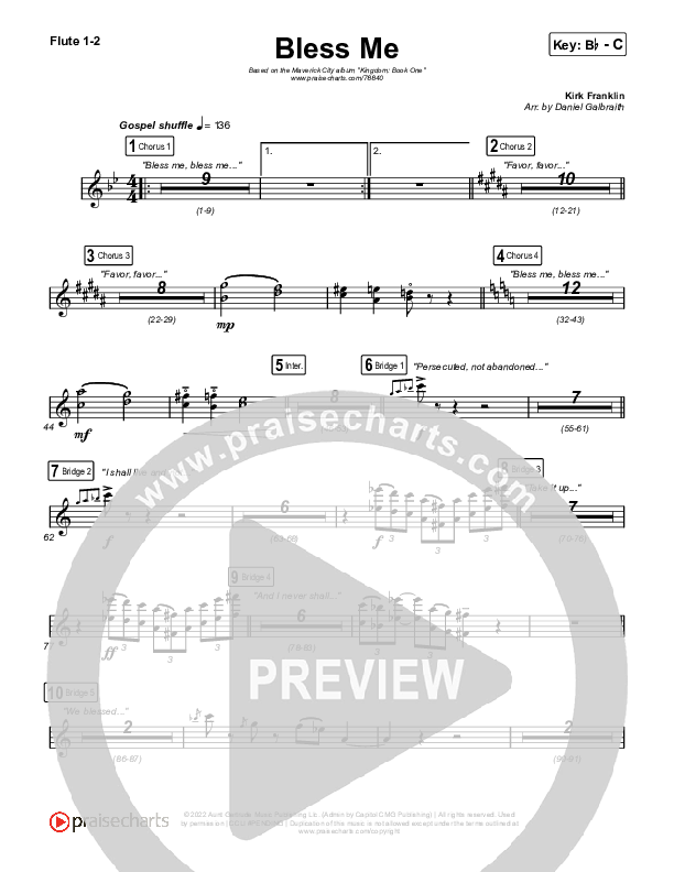 Download the Orchestration wind parts for Bless Me by Kirk Franklin / Maverick City Music, from the album Kingdom: Book One. This song was arranged by Daniel Galbraith in the key of Bb, C.