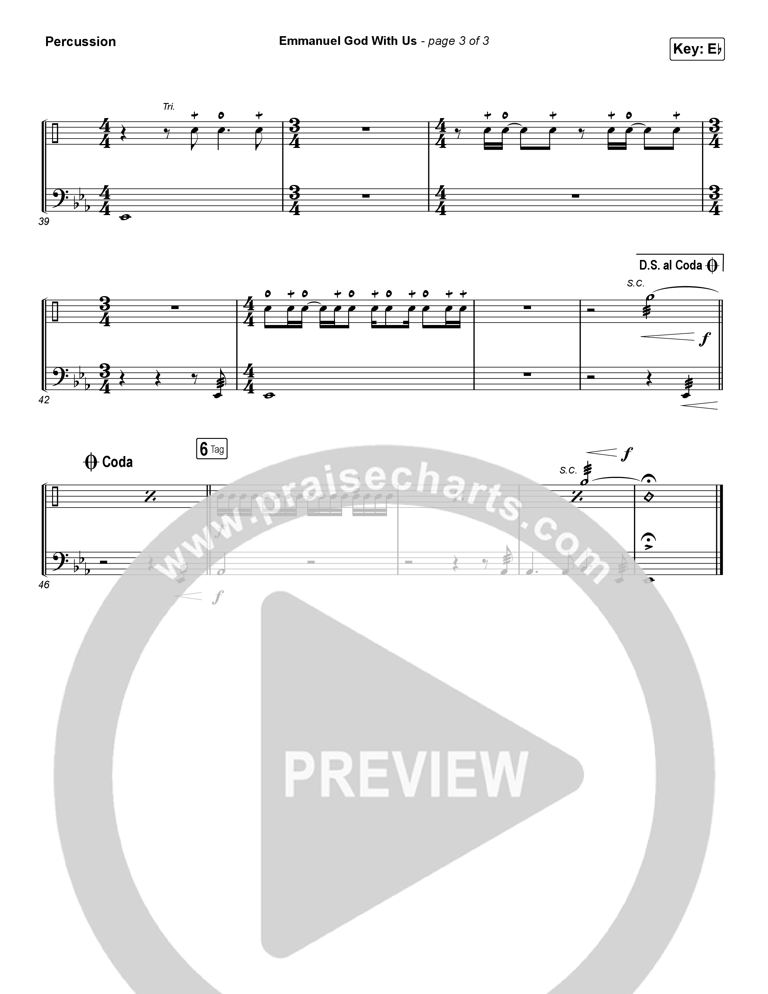 Download the percussion sheet music for Emmanuel God With Us (Unison/2-Part Choir) by Chris Tomlin / Arr. Luke Gambill, from the album Emmanuel: Christmas Songs Of Worship. This song was arranged by Luke Gambill / Daniel Galbraith in the key of Eb.