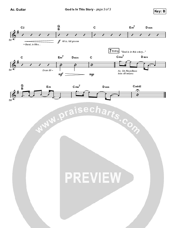 Download the Acoustic Guitar sheet music for God Is In This Story by Katy Nichole / Big Daddy Weave, from the album Katy Nichole. This song was arranged by Grant Wall / Daniel Galbraith in the key of B, Bb, C.