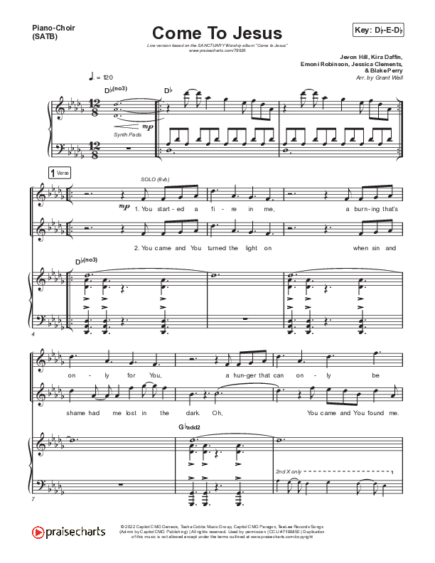 Download the PDF sheet music for Come To Jesus (Live) by SANCTUARY Worship, from the album Sanctuary: Atlanta. This song was arranged by Grant Wall in the key of C, Db.