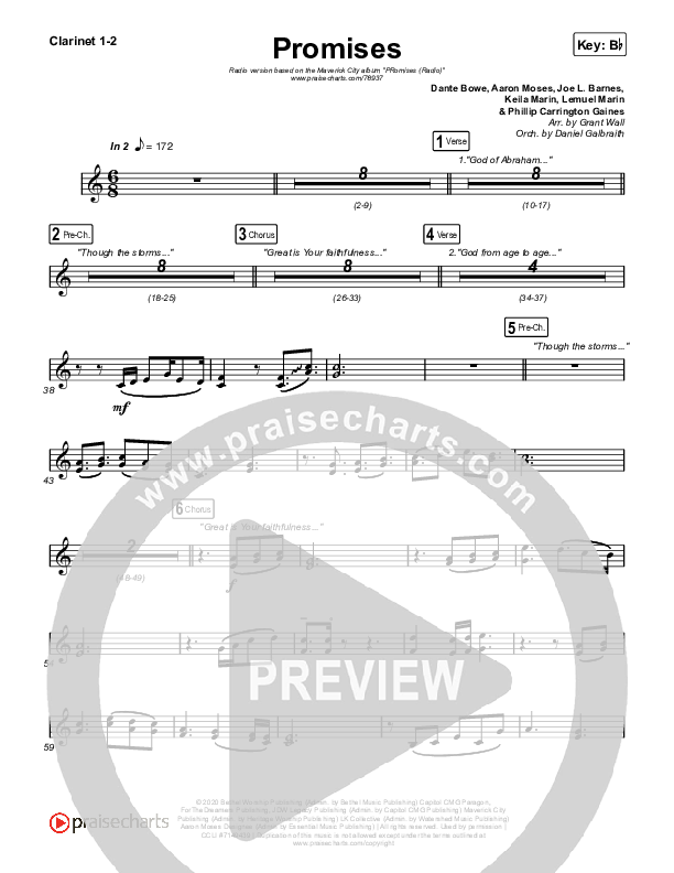 Promises (Radio) Clarinet Sheet Music PDF (Maverick City Music / Joe L. Barnes / Naomi Raine)