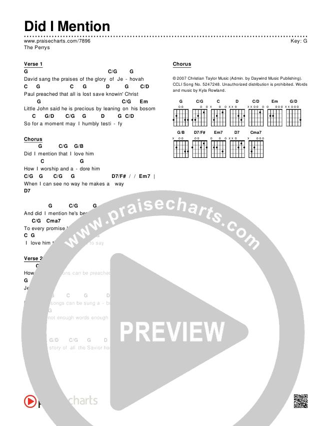 Download the PDF Chord Charts for Did I Mention by The Perrys, from the album Songs From Daywind.