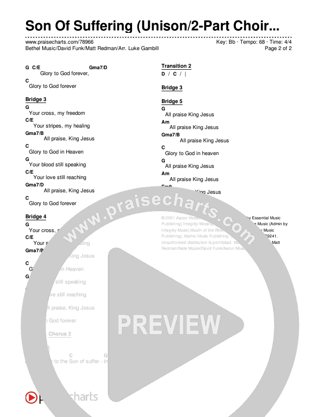 Son Of Suffering (Unison/2-Part Choir) Chords & Lyrics (Bethel Music / David Funk / Matt Redman / Arr. Luke Gambill)