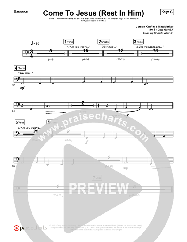 Come To Jesus (Rest In Him) (Unison/2-Part Choir) Bassoon Sheet Music PDF (Keith & Kristyn Getty / Jordan Kauflin / Matt Merker / Arr. Luke Gambill)
