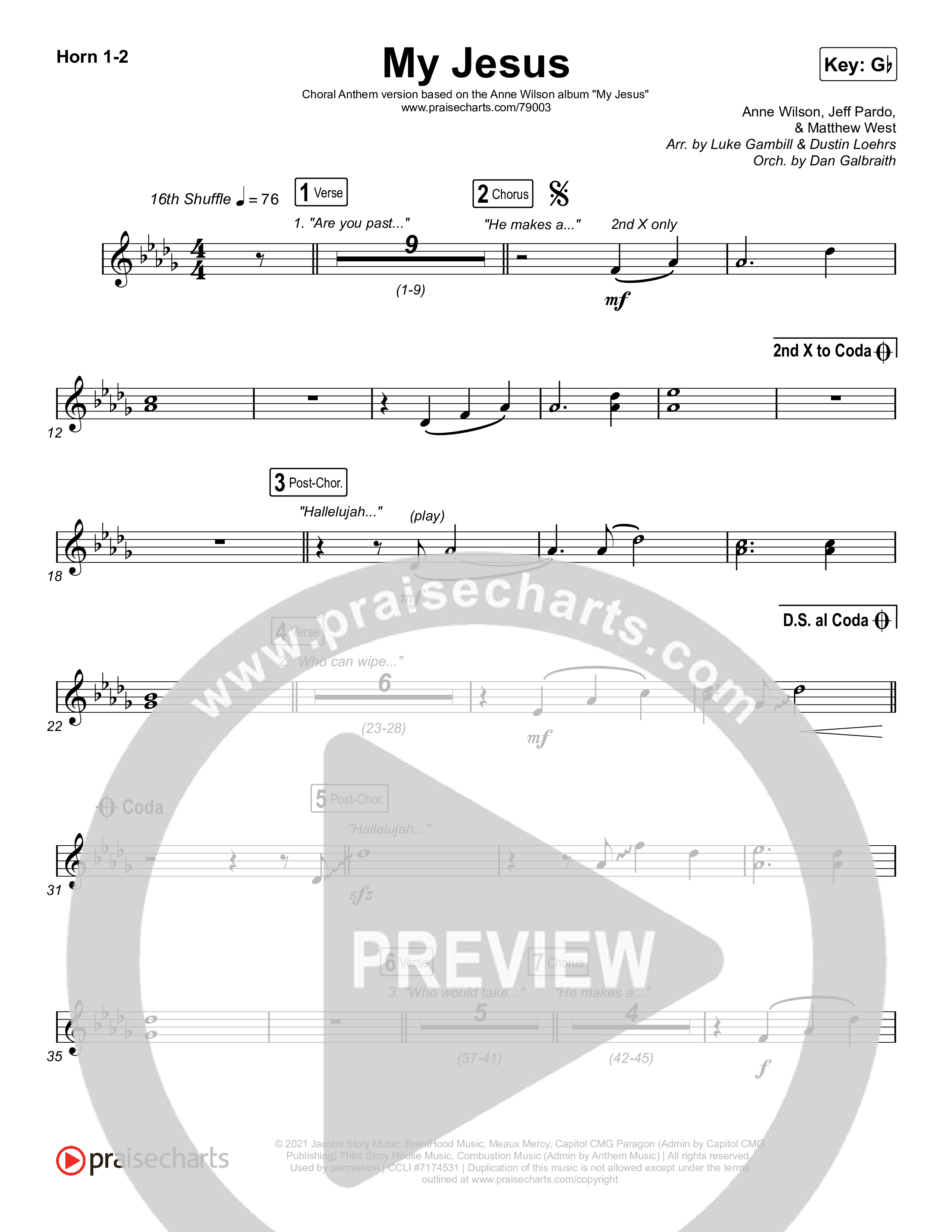 Download the Orchestration brass parts for My Jesus (Choral Anthem SATB) by Anne Wilson / Arr. Luke Gambill, from the album My Jesus - Single. This song was arranged by Luke Gambill in the key of Gb.