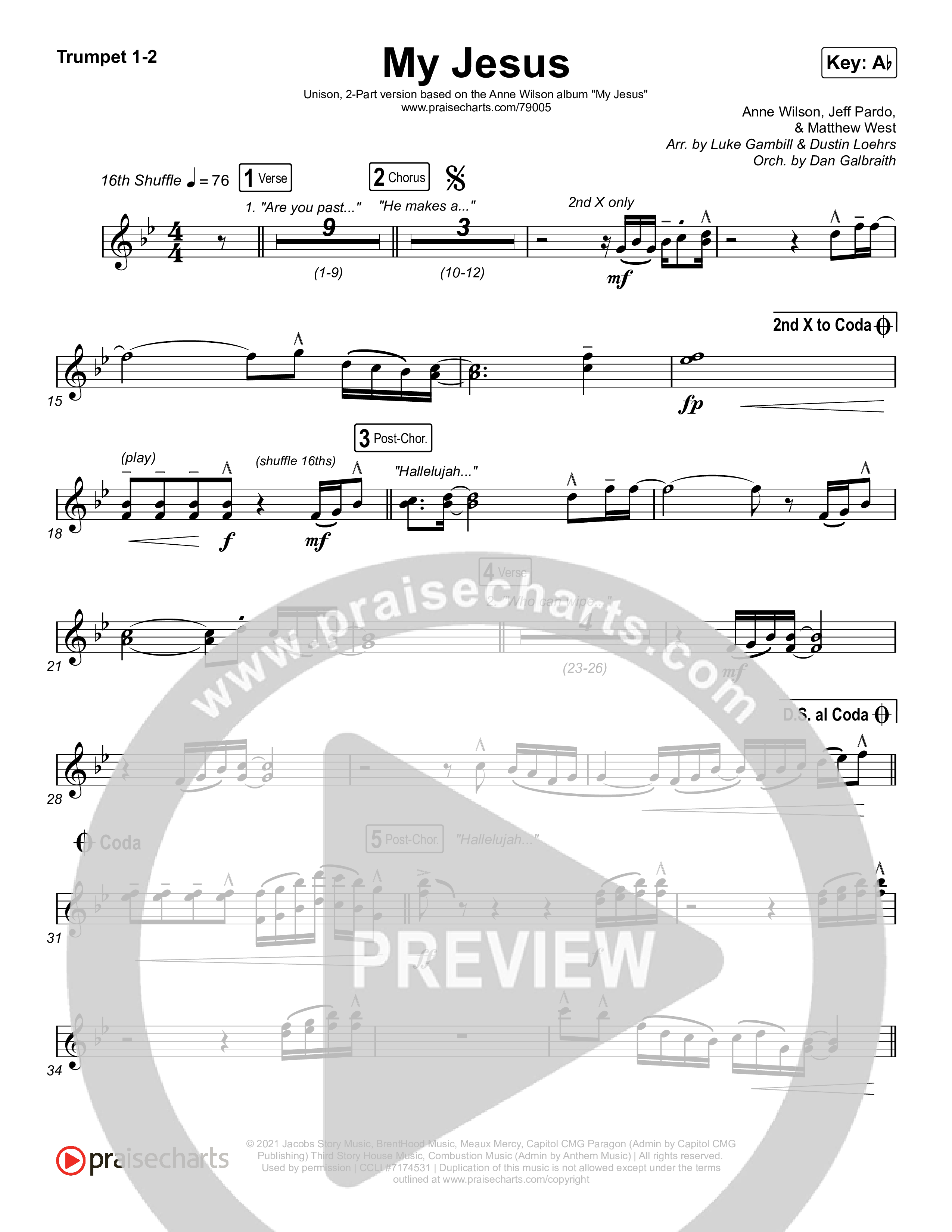 Download the trumpet sheet music for My Jesus (Unison/2-Part Choir) by Anne Wilson / Arr. Luke Gambill, from the album My Jesus - Single. This song was arranged by Luke Gambill in the key of Ab.