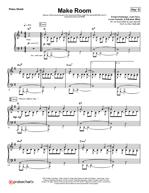 Download the piano sheet for Make Room (Unison/2-Part Choir) by Community Music / Arr. Luke Gambill, from the album Make Room - EP. This song was arranged by Luke Gambill / Daniel Galbraith / Grant Wall in the key of G.
