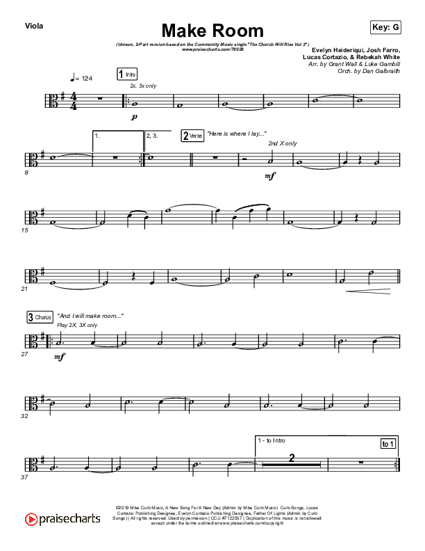 Download the Viola sheet music for Make Room (Unison/2-Part Choir) by Community Music / Arr. Luke Gambill, from the album Make Room - EP. This song was arranged by Luke Gambill / Daniel Galbraith / Grant Wall in the key of G.