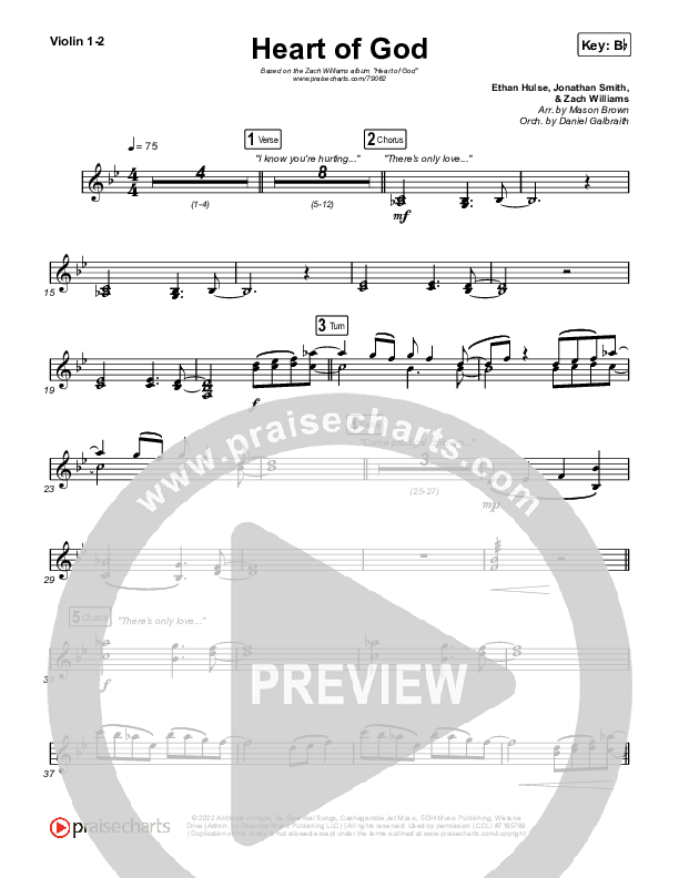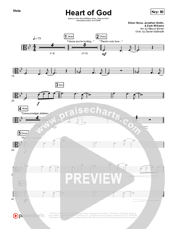 Download the Orchestration string parts for Heart Of God by Zach Williams, from the album A Hundred Highways. This song was arranged by Mason Brown / Daniel Galbraith in the key of A, Bb.