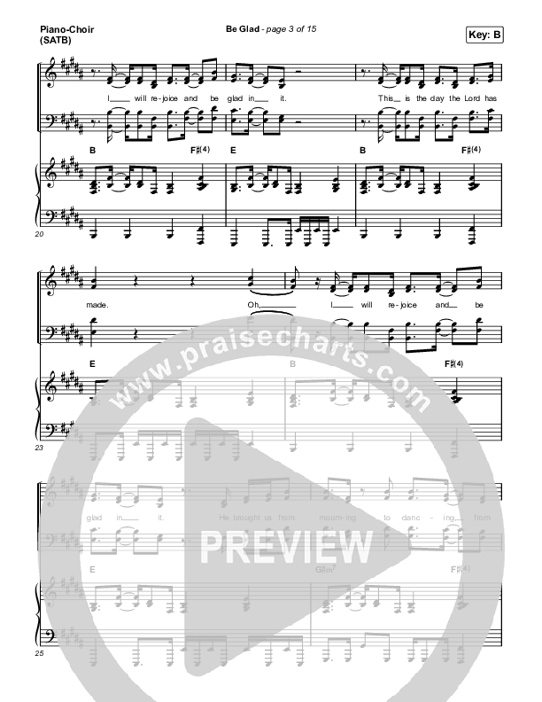 Download the sheet music for Be Glad by Cody Carnes, from the album Be Glad. This song was arranged by Grant Wall / Daniel Galbraith in the key of B, Bb, G.